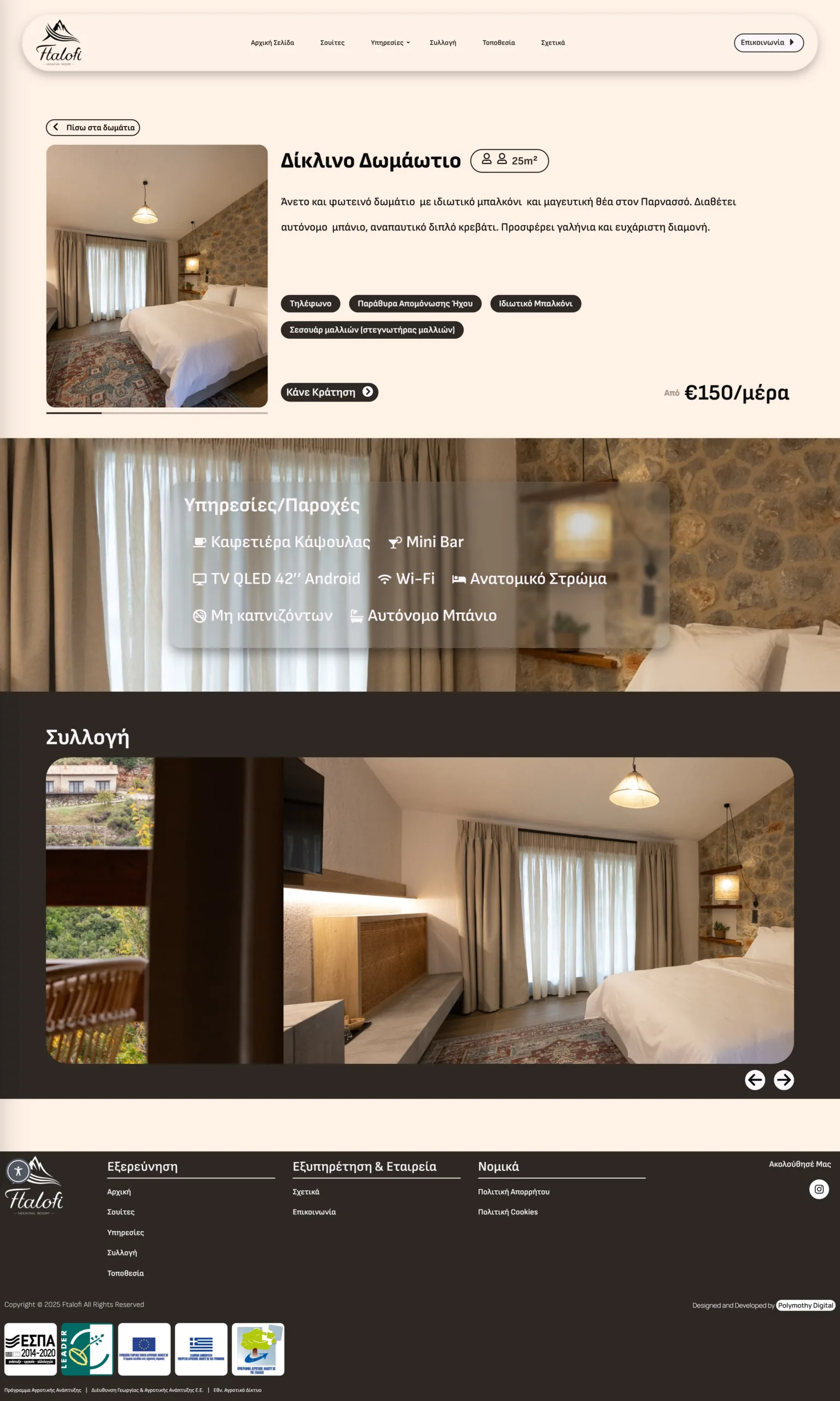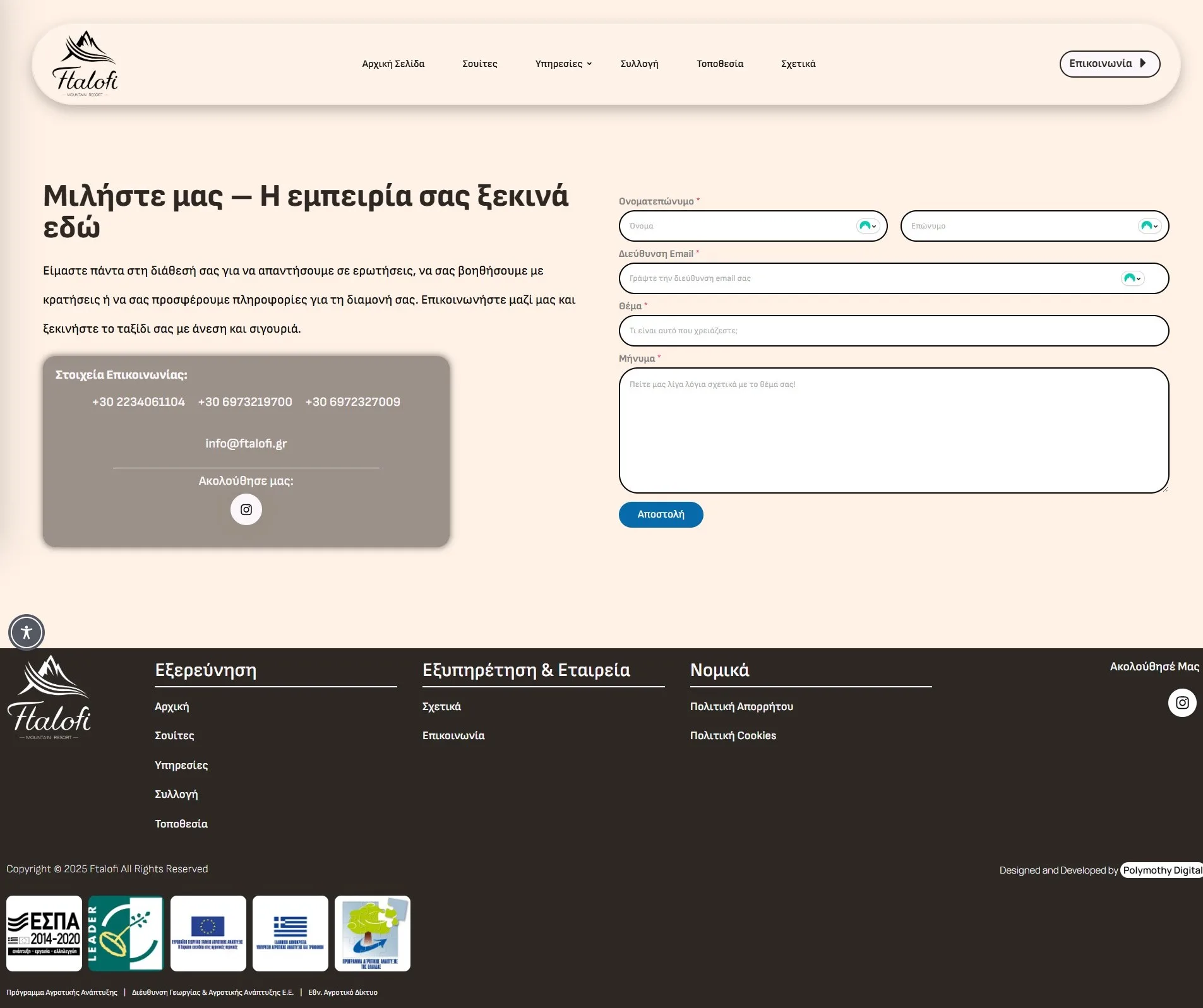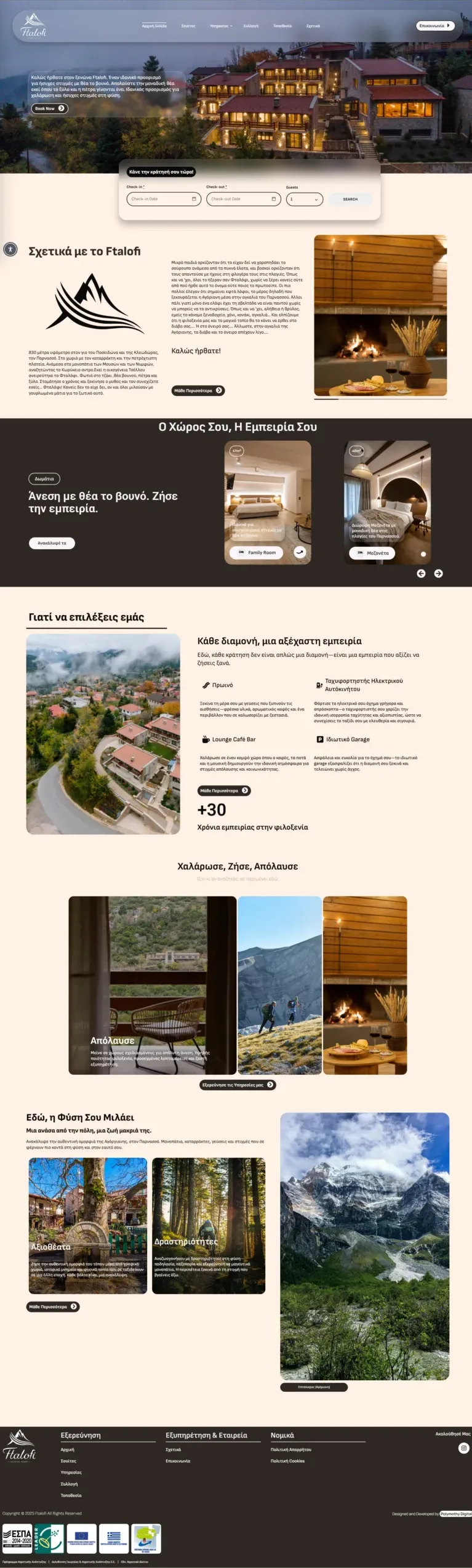 Το ftalofi.gr αναπτύχθηκε με στόχο να αναδείξει την ορεινή εμπειρία του καταλύματος και να μετατρέψει την περιήγηση σε άμεσες κρατήσεις. Αναλάβαμε UI/UX design πλήρως custom, σχεδιάζοντας εξατομικευμένη ροή χρήστη και οπτική ταυτότητα, και υλοποιήσαμε custom WordPress χωρίς έτοιμο θέμα μαζί με custom booking engine ως WordPress plugin, για απευθείας κρατήσεις, ευελιξία τιμολόγησης και βελτιστοποιημένη απόδοση. Το αποτέλεσμα είναι μια γρήγορη, λειτουργική και αισθητικά συνεπής πλατφόρμα που ενισχύει την εμπιστοσύνη του επισκέπτη και μειώνει τα βήματα μέχρι την κράτηση.