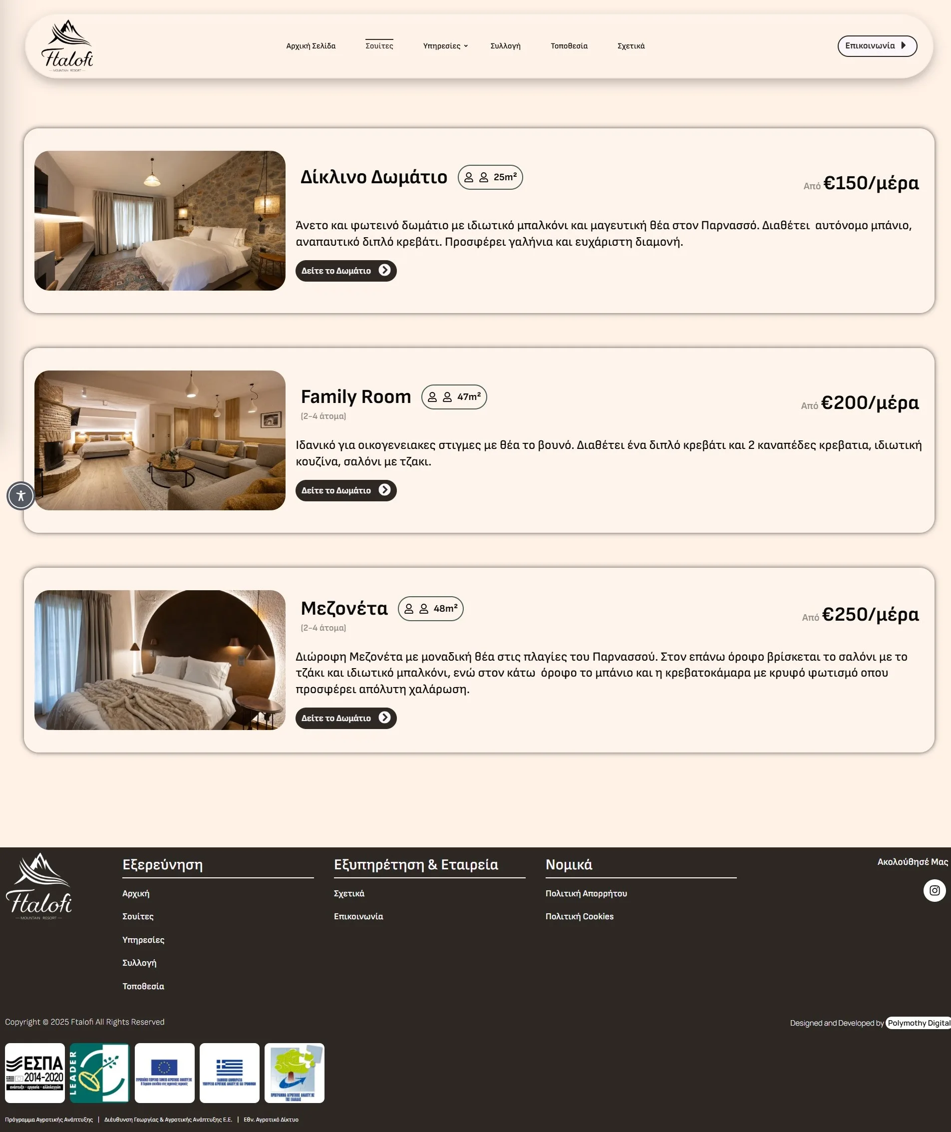 Παράλληλα, στόχος μας ήταν ένα αποτελεσματικό UX με εύκολη πλοήγηση και σαφή, ολοκληρωμένη ενημέρωση για τα δωμάτια, τις υπηρεσίες και την τοποθεσία, μειώνοντας τα βήματα μέχρι την κράτηση. Σε τεχνικό επίπεδο, επιδιώξαμε ένα ελαφρύ, γρήγορο site που δεν θυσιάζει την αισθητική, με απλά και ξεκάθαρα βήματα κράτησης για άμεσες απευθείας κρατήσεις.
